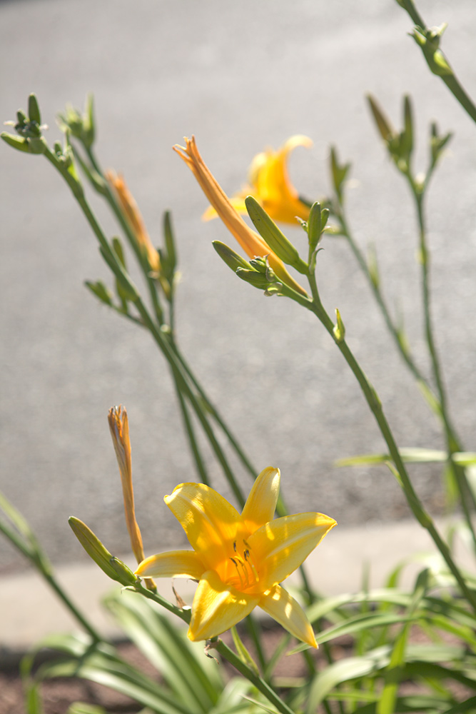 As I was framing the shots of this particular flower, I noticed that every time a car would pass, I'd get a momentary shadow that would darken the background of the shot.