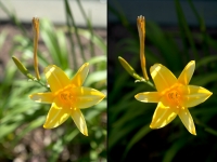 Consecutive frames. In the right side image, a passing car casts a shadow over the scene, leaving the yellow bloom exposed by the sun.