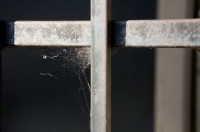 Webbed Grid Date: 11/07/2010 Spiderwebs on the wrought iron in front of the studio.