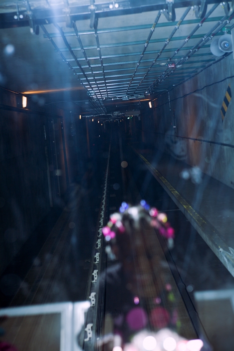 The seat at the back of the car was occupied by a woman and her two little daughters who plastered themselves up against the window, watching as we progressed through the tunnel.