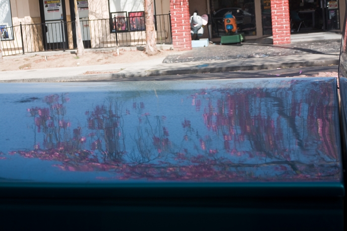 Reflections in the cover of the truck bed as a car passes by. I like how the tire ended up almost centered on the diagonal.