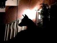 I'd had this silhouette shot in mind for a while after seeing him like this at night a few times, "standing" with paws up on the balcony rail (and frequently barking at whatever he sees...).