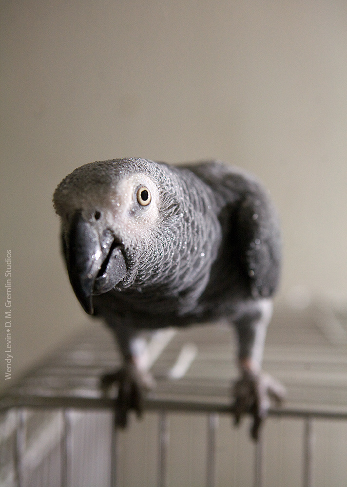 Friday Post-Bath Cage Chewing