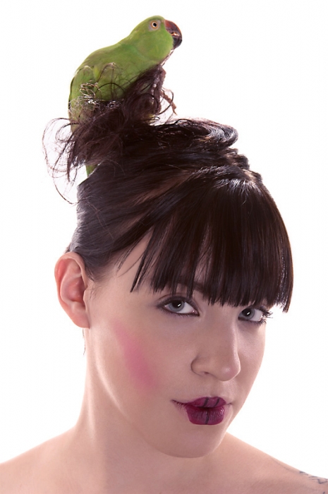 Watch the Birdie...! Date/Time: Wed 18 Jun 2008 04:03:42 AM PDT Conundra (the model) and Gordie (the bird)