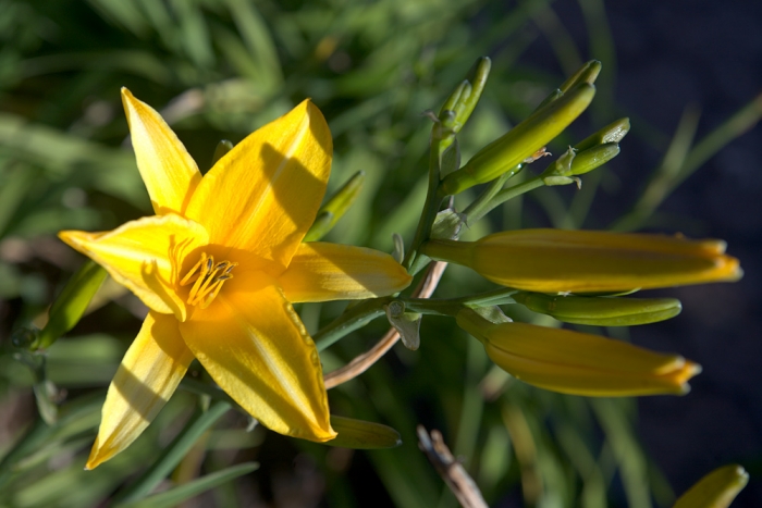 As I was framing the shots of this particular flower, I noticed that every time a car would pass, I'd get a momentary shadow that would darken the background of the shot.