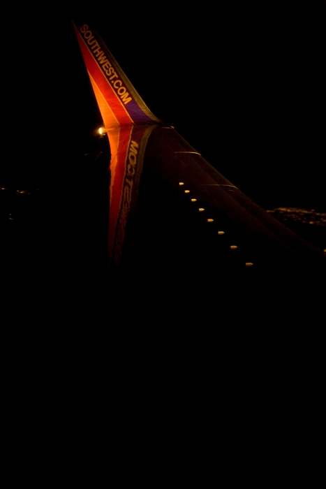 While we were on the runway awaiting takeoff, I'd noticed the lit-up wingtip and its watery reflection along the flat of the wing. I had to wait till we were in the air and given the 'ok' to use portable electronic devices before I could pull out my camera and take the photo I wanted, and I'm glad I did so right away, as the wing lights were only left on for the very first several minutes we were in the air.