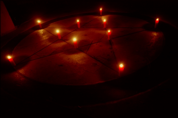 brought the red candles over for a shoot we were planning. He lit them on the pentagram as a test of the color and light,