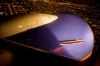 While we were on the runway awaiting takeoff, I'd noticed the lit-up wingtip and its watery reflection along the flat of the wing. I had to wait till we were in the air and given the 'ok' to use portable electronic devices before I could pull out my camera and take the photo I wanted, and I'm glad I did so right away, as the wing lights were only left on for the very first several minutes we were in the air.