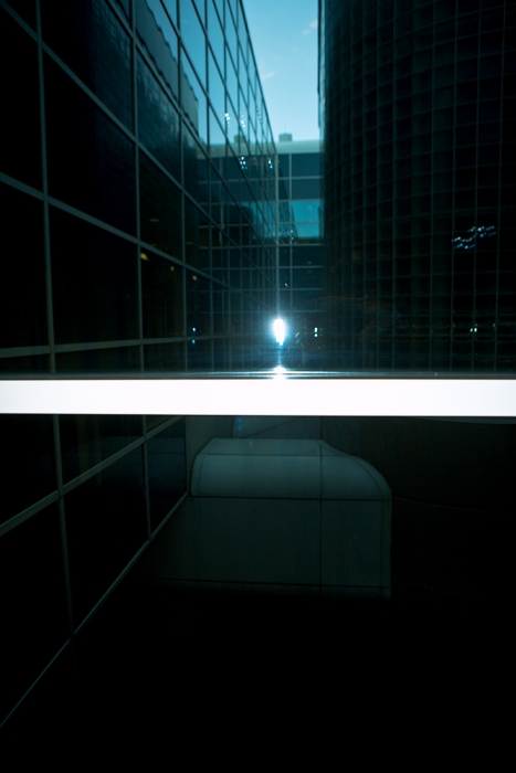 Do You Copy? Date: 08/23/2010 Although I'd packed the camera away for exiting the plane, the sight of airport neon reflected in one of a series of metal columns caught the attention of my very sleep-deprived mind.