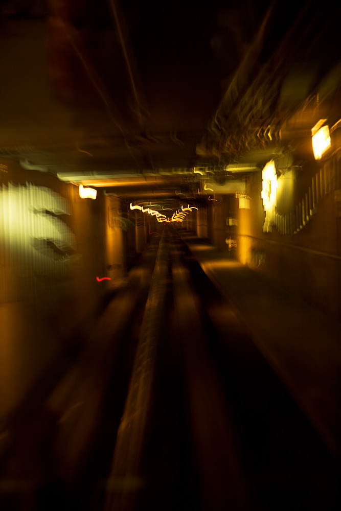 The seat at the back of the car was occupied by a woman and her two little daughters who plastered themselves up against the window, watching as we progressed through the tunnel.
