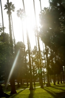 An ordinary palm tree, shot from almost right next to it, looking upward.