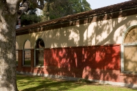 I liked the big shadows, rich red brick, and receding angle in this view of one of the Youth Center buildings.