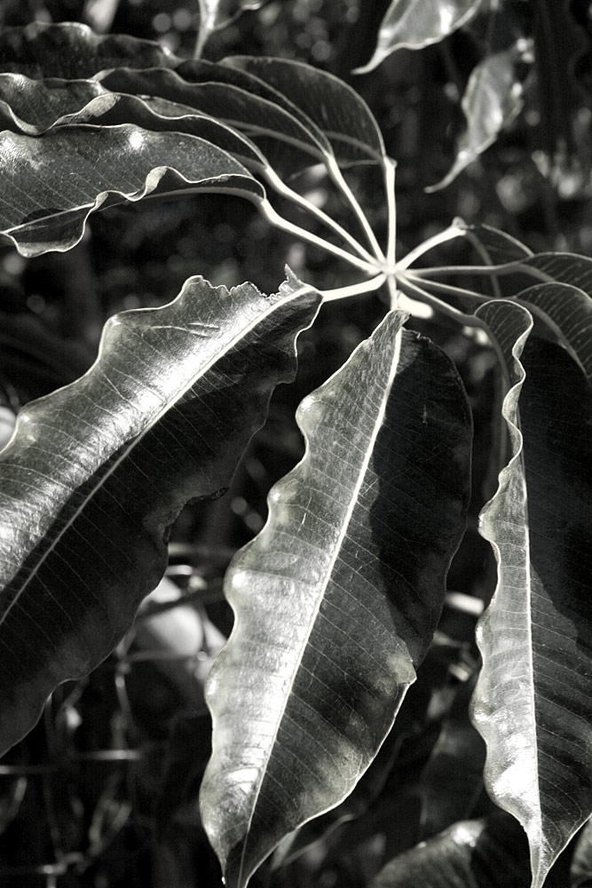 In b/w, the leaf blades, highlights, and shadows, become more of a geometric study than a portrait of a living plant.