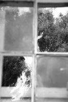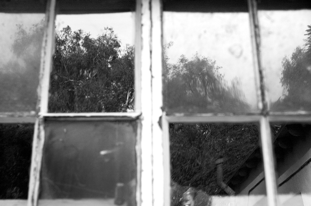 With this set of windows, I intentionally focused 'through' the glass on the reflections themselves. In black and white, the dilapidated window glass and frames create a ghostly broken-down/haunted house atmosphere, while the partially warped reflections continue to play their tricks on the eyes.