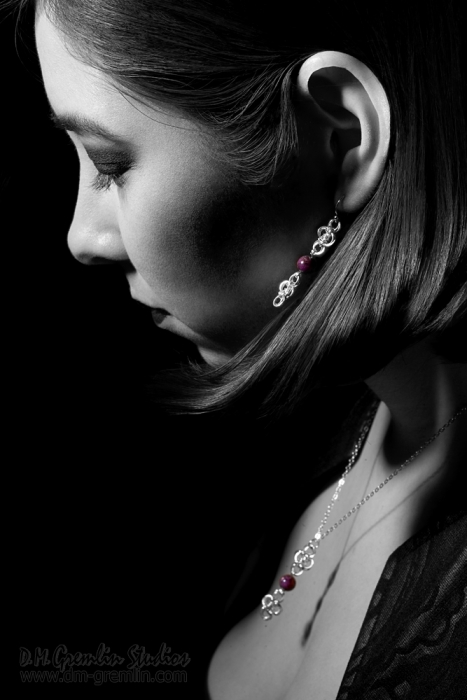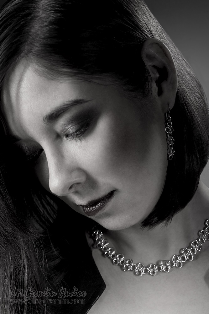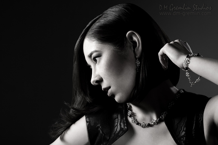 It's a striking shot in color, but even moreso in high-contrast b/w, with the jewelry featured as the only spots of color in the image.