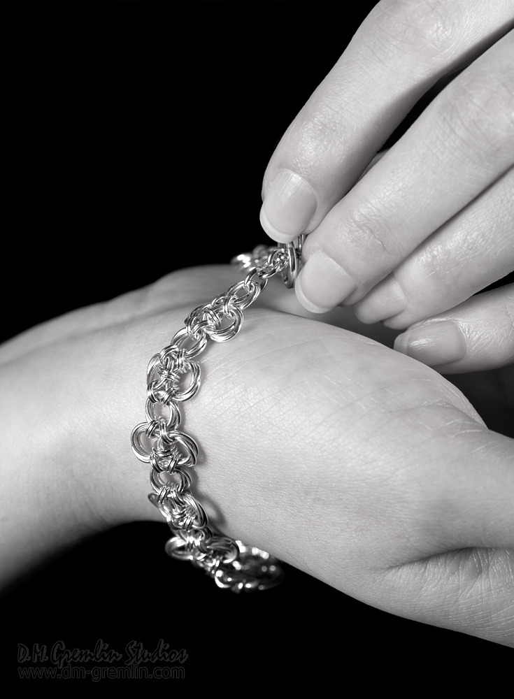 Some adjustments to one of the jewelry pieces were required during the shoot, and we shot a few closeups of the artist performing her craft.