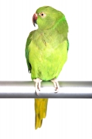 Casper the albino cockatiel and Gordie the green Indian Ringneck.