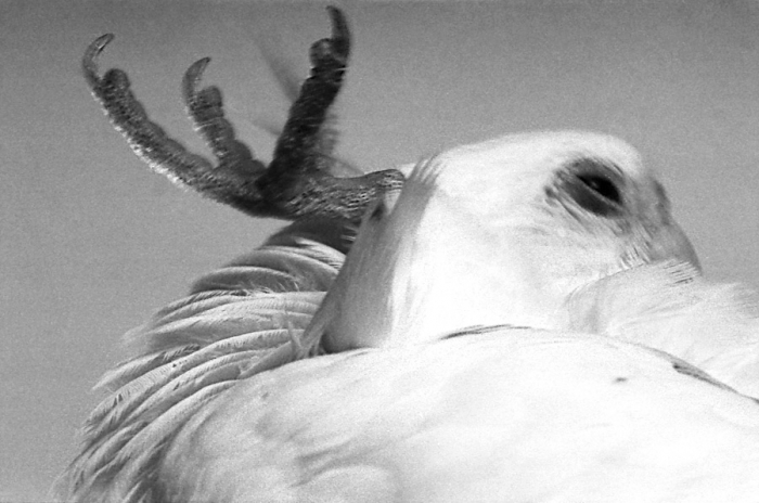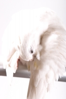 This would be her beauty shot, I suppose. It was actually quite interesting experimenting with lighting and exposure of a white bird on a white backdrop. A surprising variety of effects can be achieved.