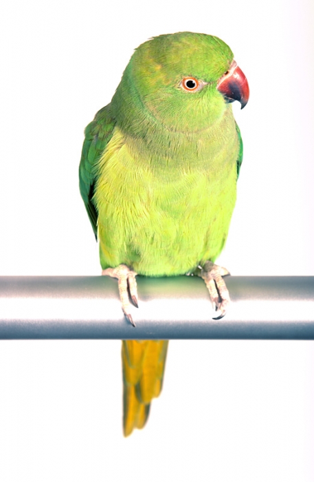 Casper the albino cockatiel and Gordie the green Indian Ringneck.