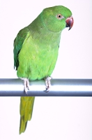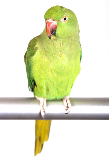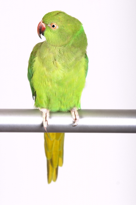 Casper the albino cockatiel and Gordie the green Indian Ringneck.