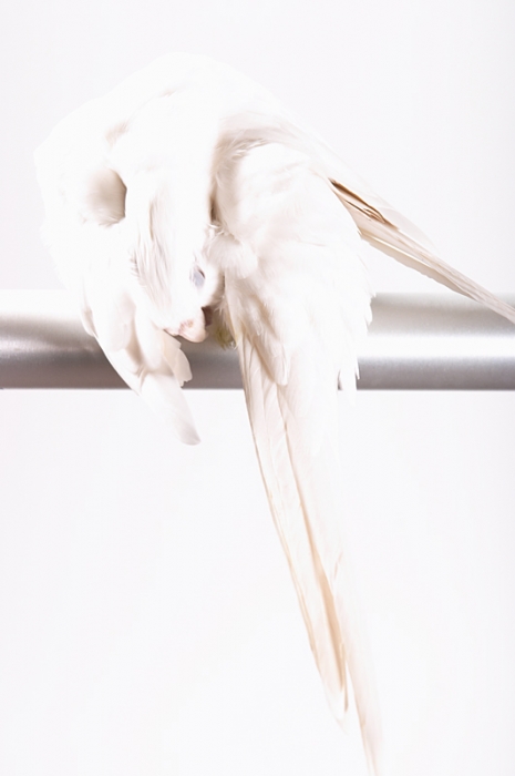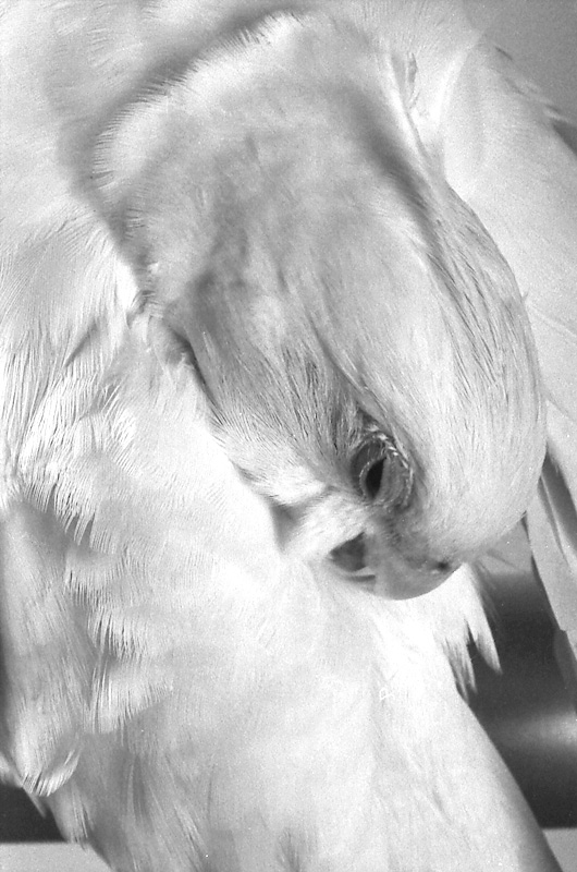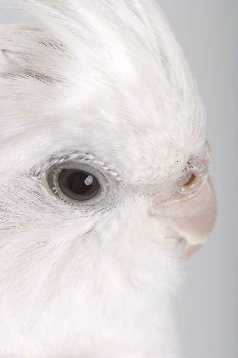 This would be her beauty shot, I suppose. It was actually quite interesting experimenting with lighting and exposure of a white bird on a white backdrop. A surprising variety of effects can be achieved.